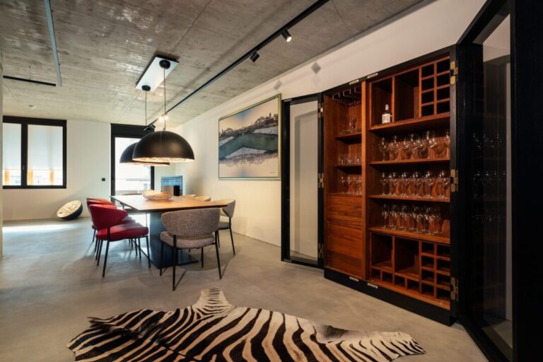 Dieses beeindruckende Loft in Wien vereint urbanen Charme mit modernem Design und hochwertiger Ausstattung. Die Kombination aus Sichtbetondecken und maßgefertigten Möbeln verleiht dem Raum eine außergewöhnliche und zugleich einladende Atmosphäre. Großzügige Glasfronten sorgen für reichlich Tageslicht und schaffen eine offene, lichtdurchflutete Wohnlandschaft.